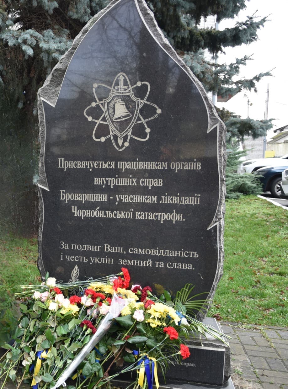 Напередодні цього дня відбулось покладання квітів до пам’ятних знаків учасникам ліквідації аварії на ЧАЕС: працівникам органів внутрішніх справ Броварщини біля міського відділу поліції, до пам’ятника Героям Чорнобиля біля пожежної частини, в парку «Перемога». У церемонії взяли участь заступник міського голови Лариса Виноградова, заступник голови Броварської районної державної адміністрації Юрій Оніщенко, заступник начальника управління соціального захисту населення Тетяна Каштанюк, Валерій Лемпіцький.