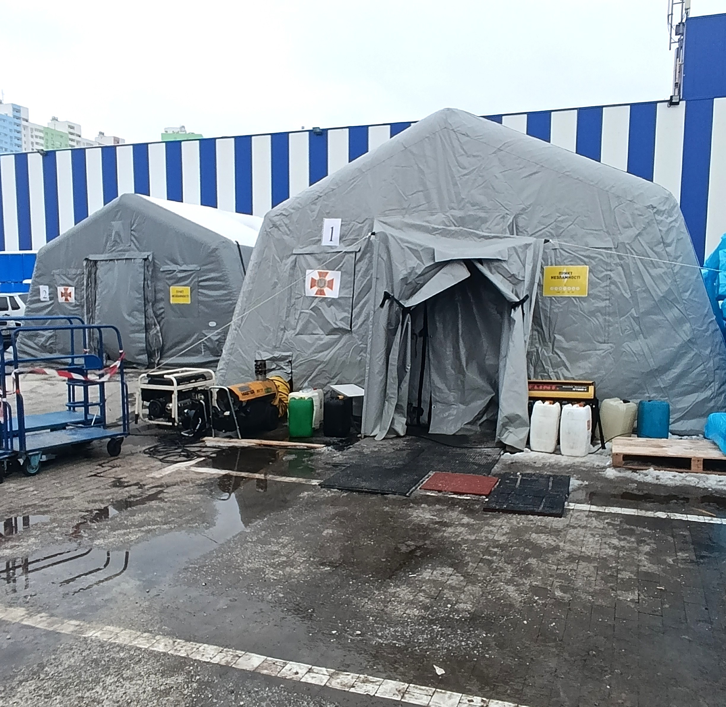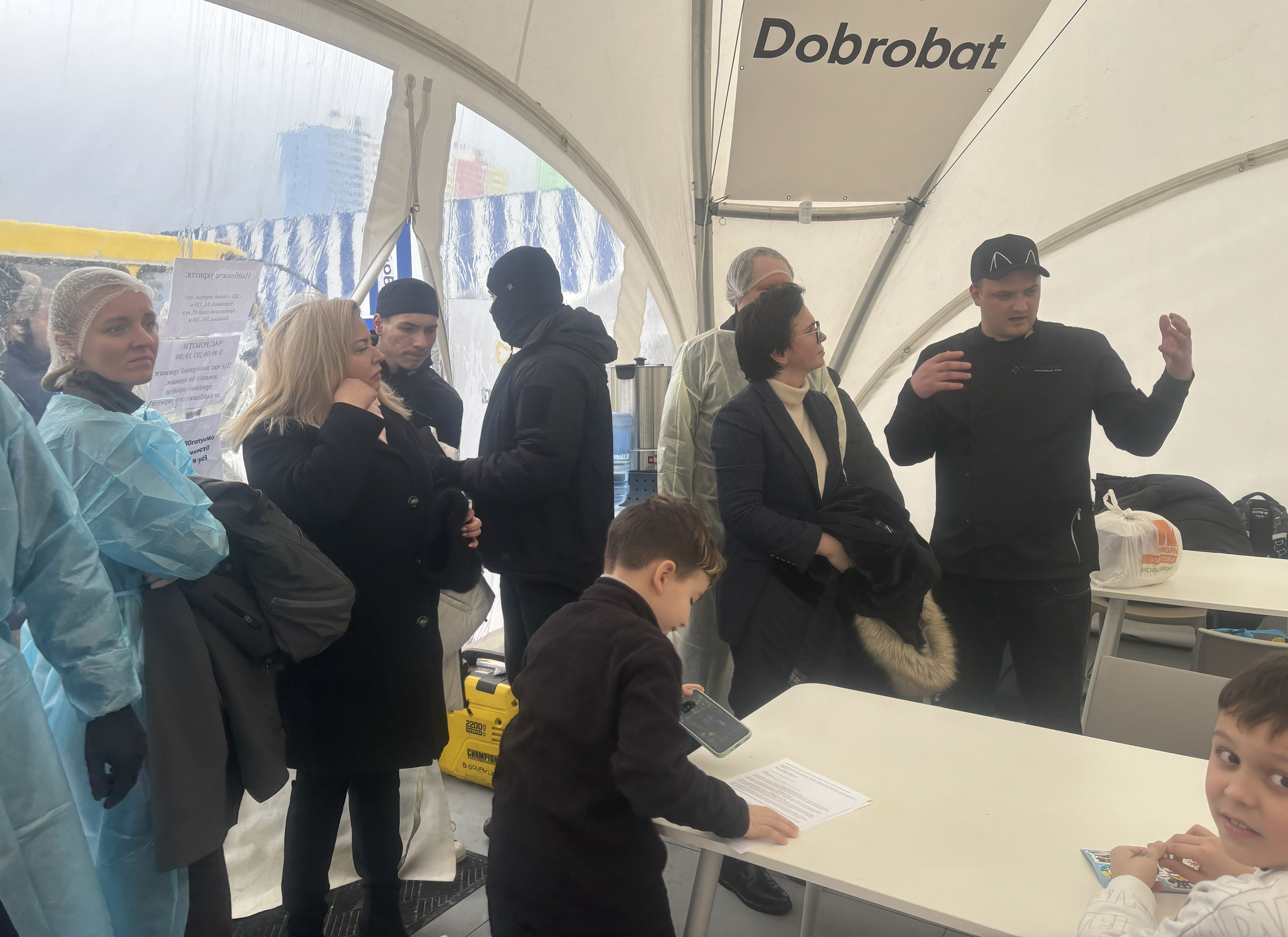 Проєкт «Їжа без кордонів» вже став символом незламності Броварів. Щодня команда кухарів готує поживні обіди, завдяки підтримці ДСНС люди мають змогу пообідати у теплій палатці поруч із мобільною кухнею.