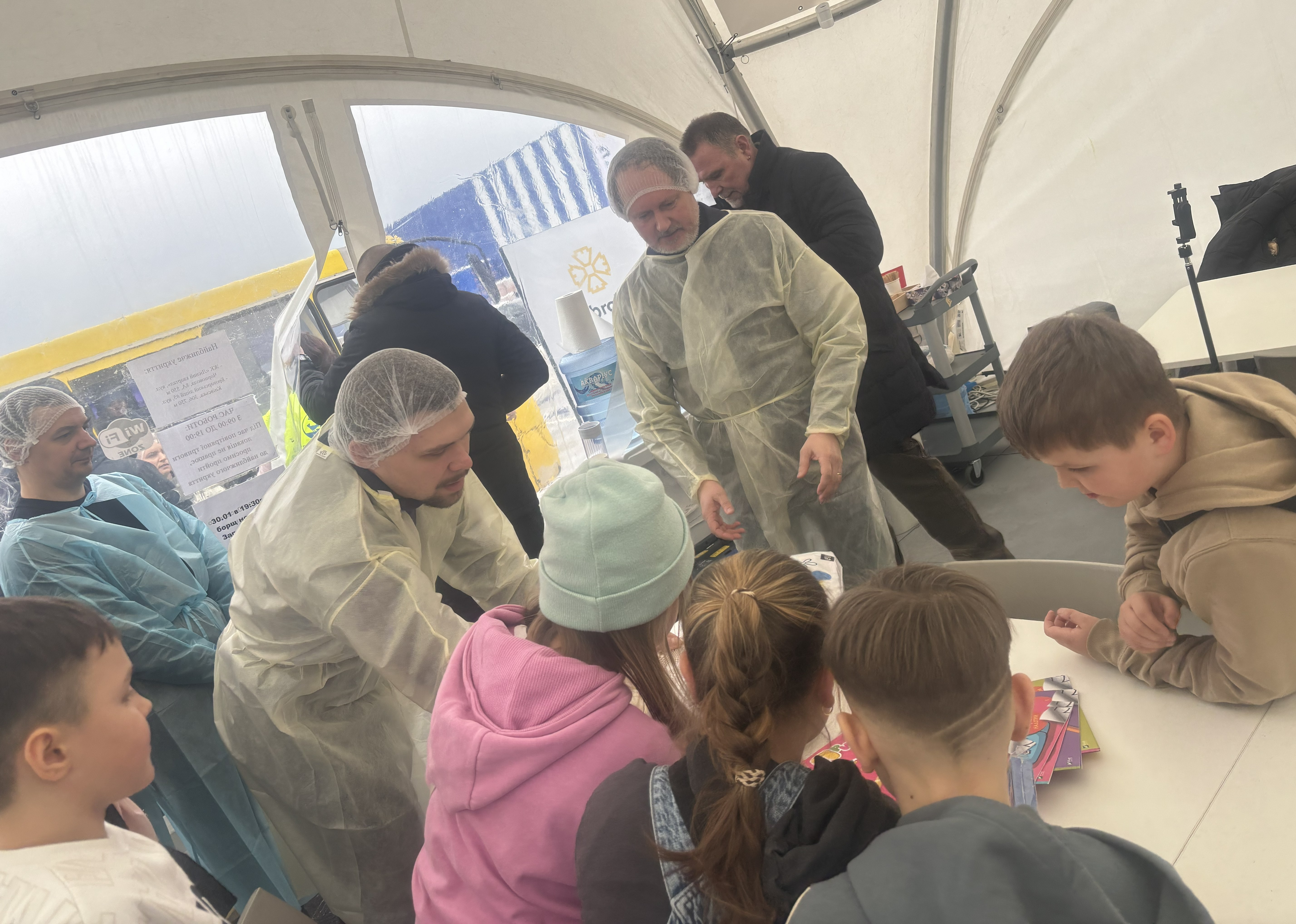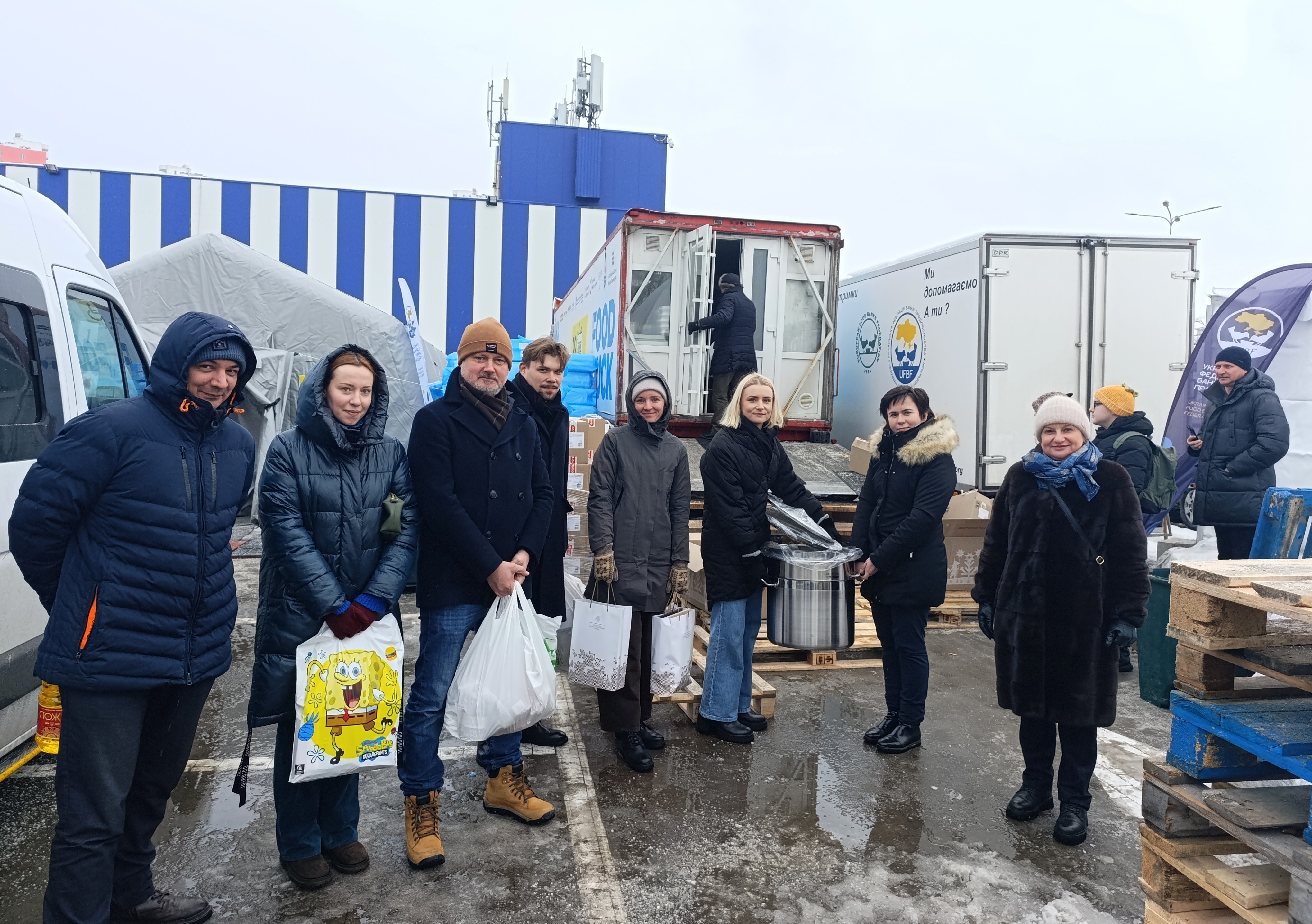 Литовська делегація приїхала не з порожніми руками: передали продукти харчування для забезпечення безперебійної роботи кухні, спеціалізований посуд для приготування великих обсягів їжі, подарунки для малечі, які приходять зігрітися до «Пункту незламності» поруч із мобільною кухнєю.