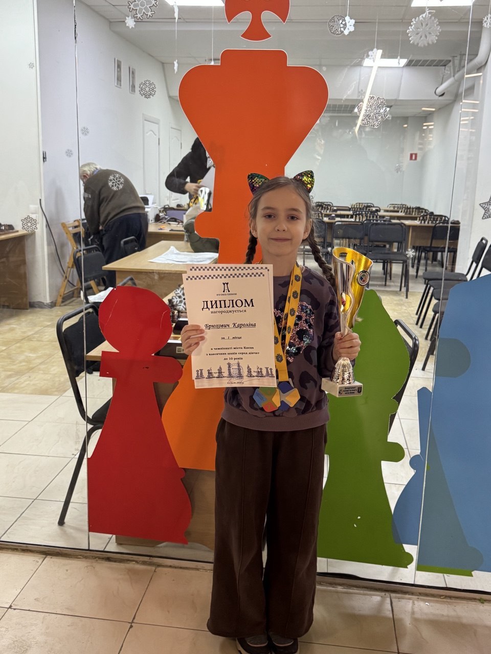 У турнірі з класичних шахів серед дівчат до 10 років жодних шансів своїм суперницям не залишила юна броварчанка Брюхович Кароліна! Її результат — 9 очок з 9 можливих!