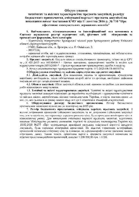 Обґрунтування технічних та якісних характеристик предмета закупівлі, розміру бюджетного призначення, очікуваної вартості предмета закупівлі