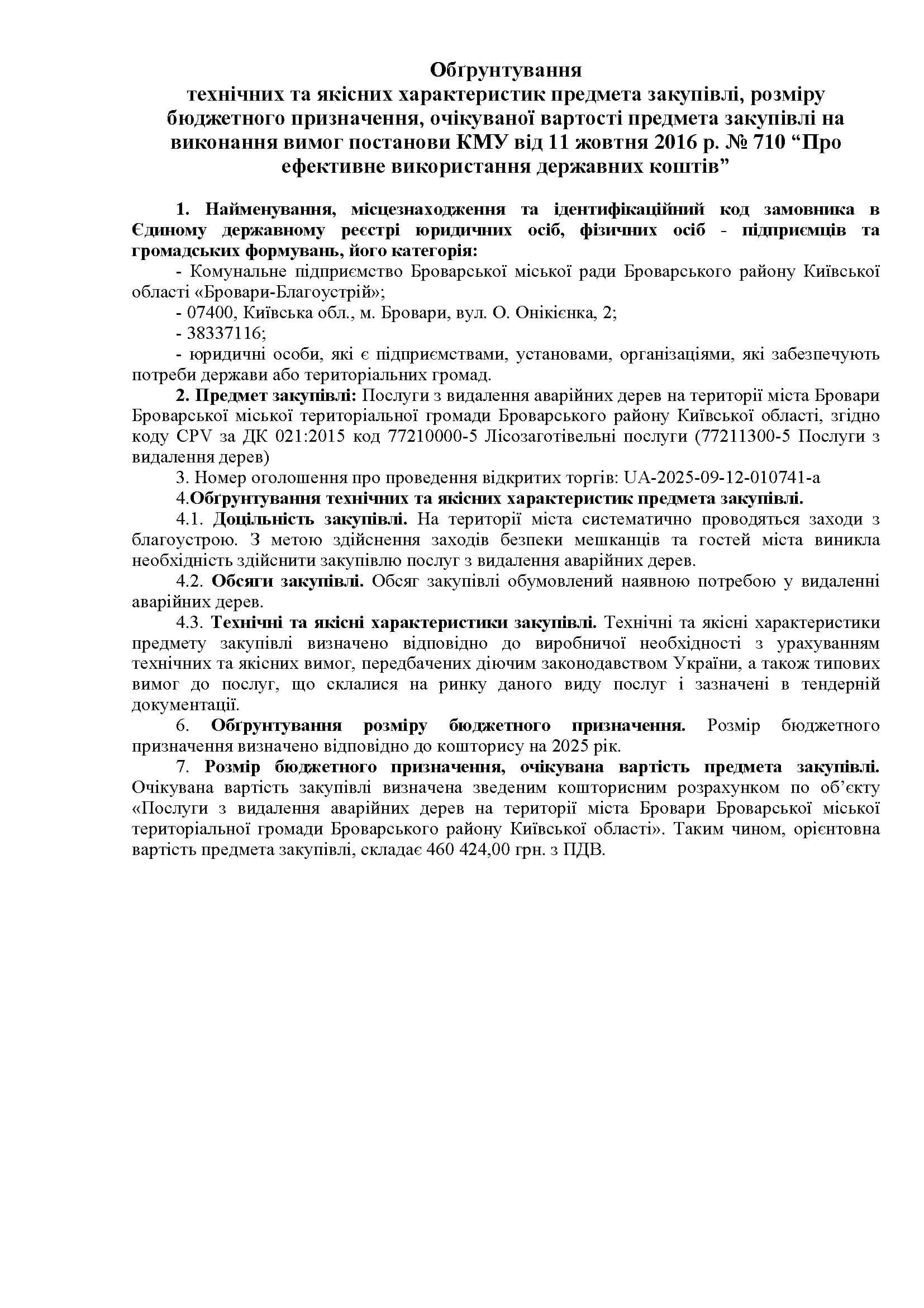 Послуги з видалення аварійних дерев на території міста Бровари Броварської міської територіальної громади