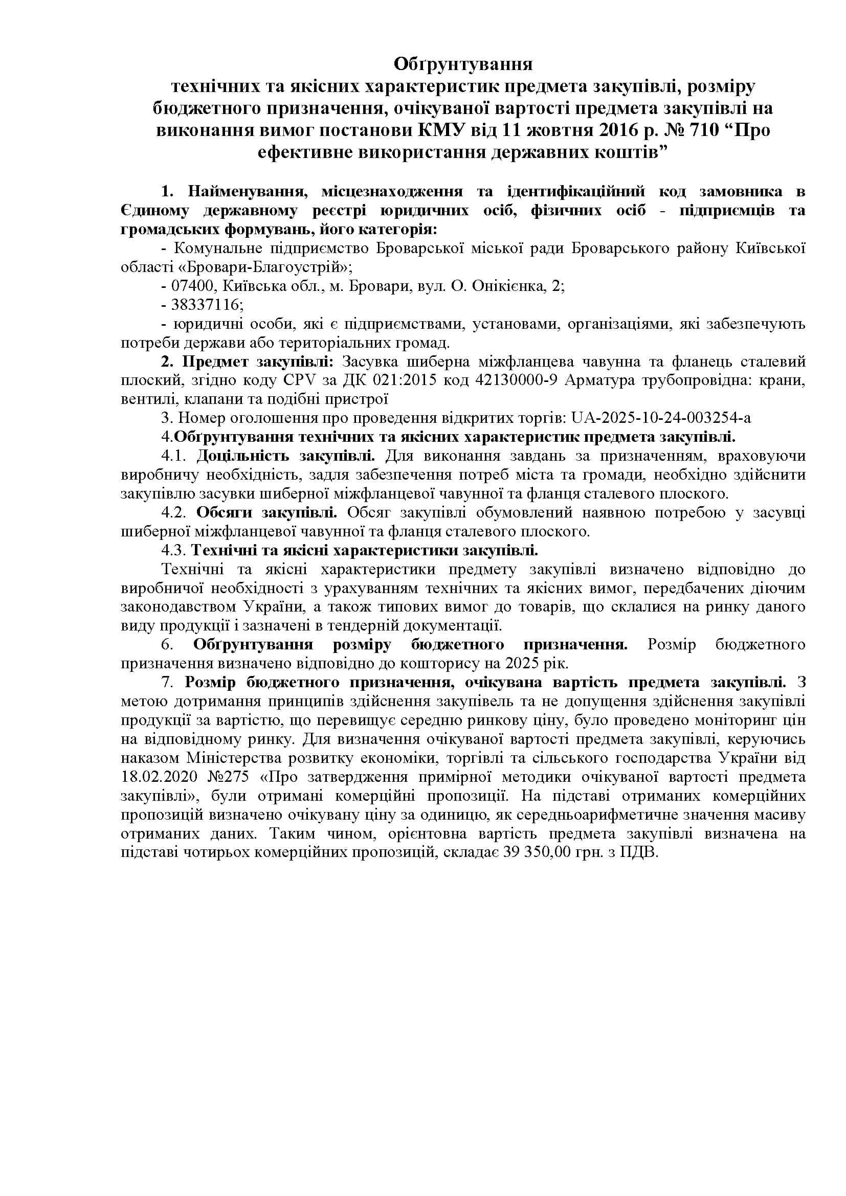 Обґрунтування технічних та якісних характеристик предмета закупівлі, розміру бюджетного призначення, очікуваної вартості предмета закупівлі