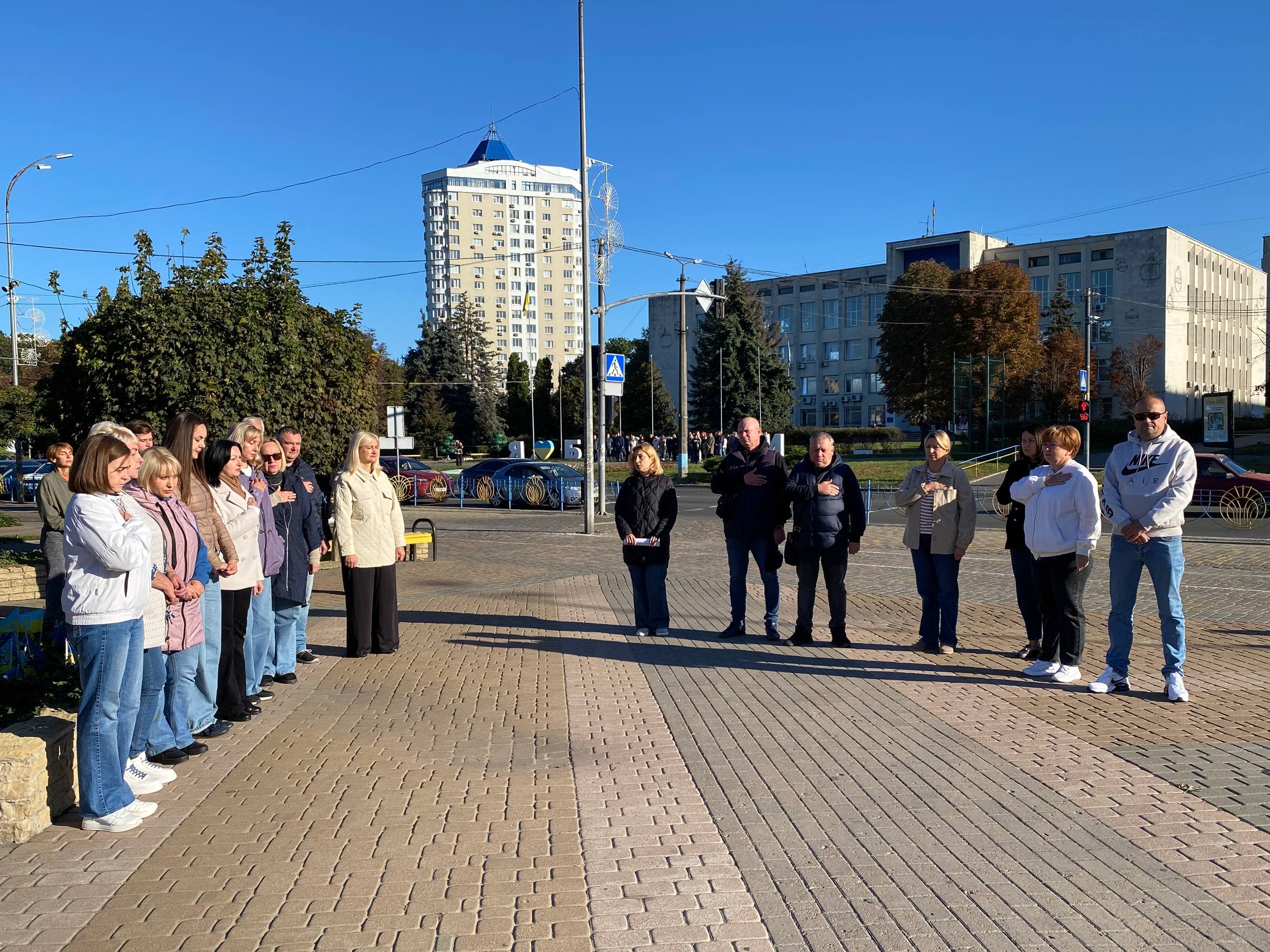 О 9:00 на перехрестя бульвару Незалежності та вулиці Героїв України за участі поліції тимчасово зупиняється рух транспорту — і все місто завмирає на хвилину в глибокій шані.