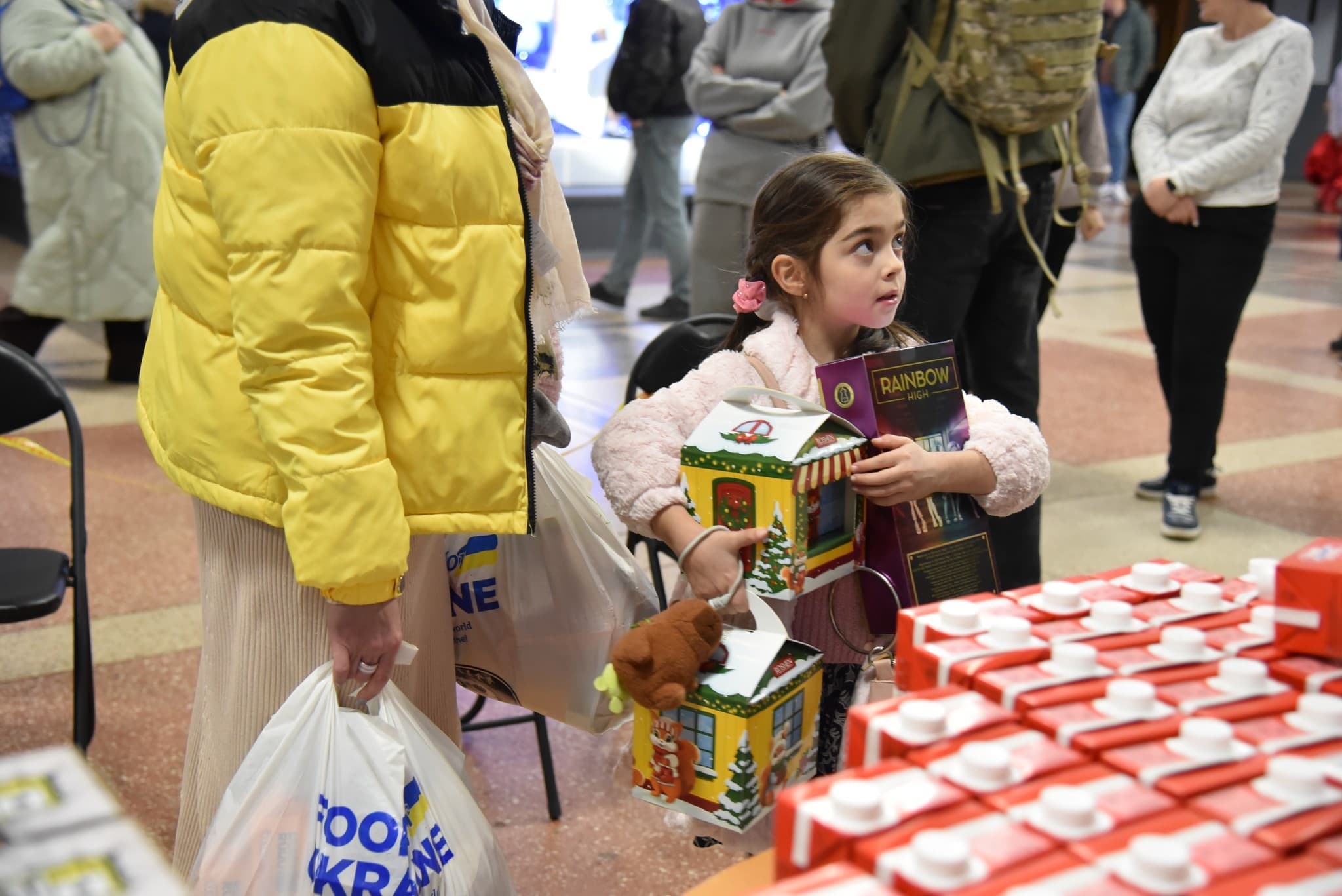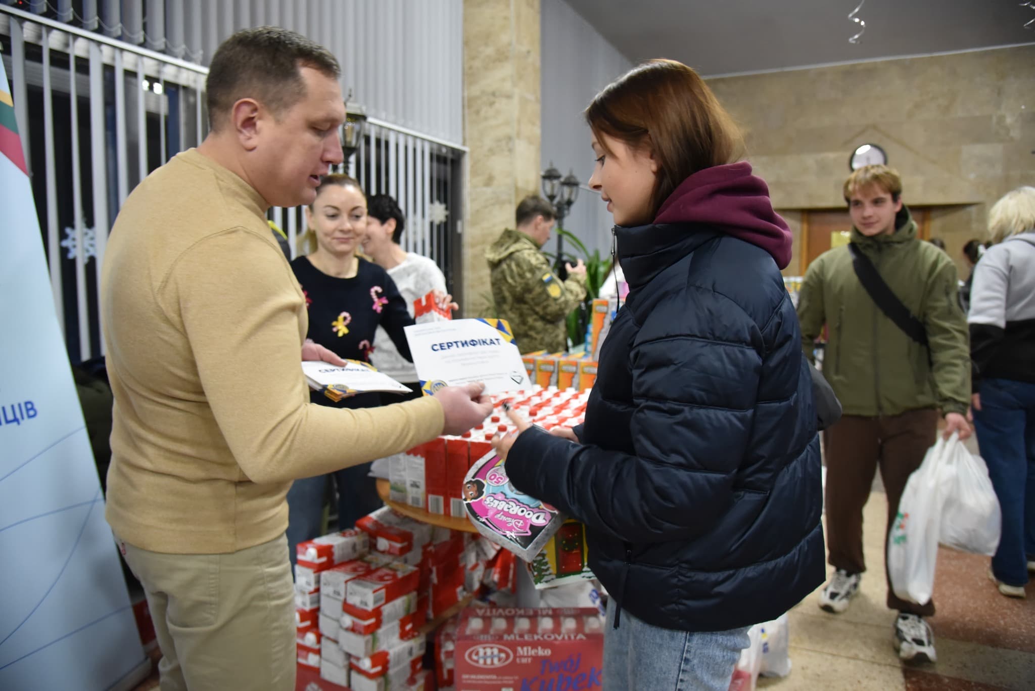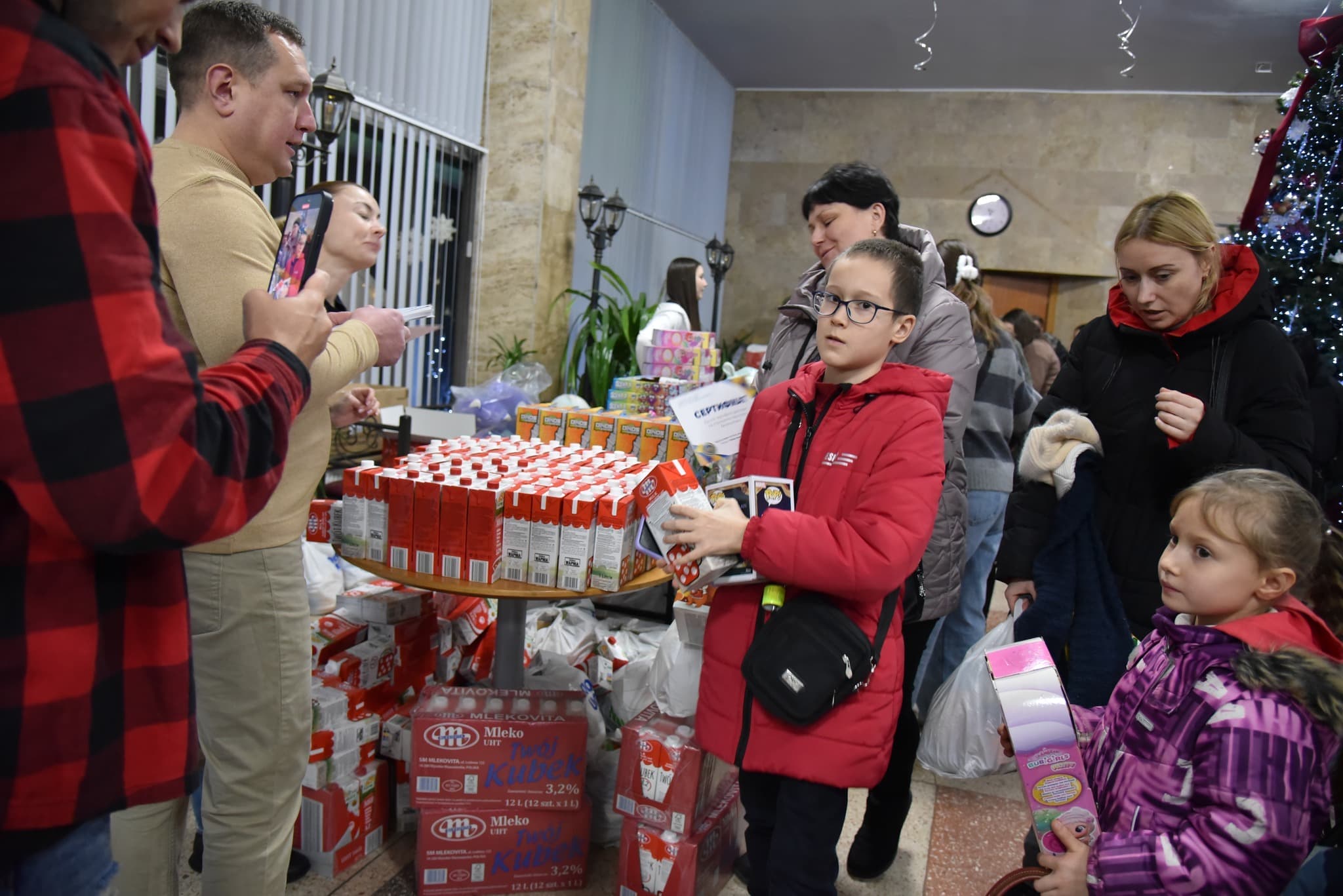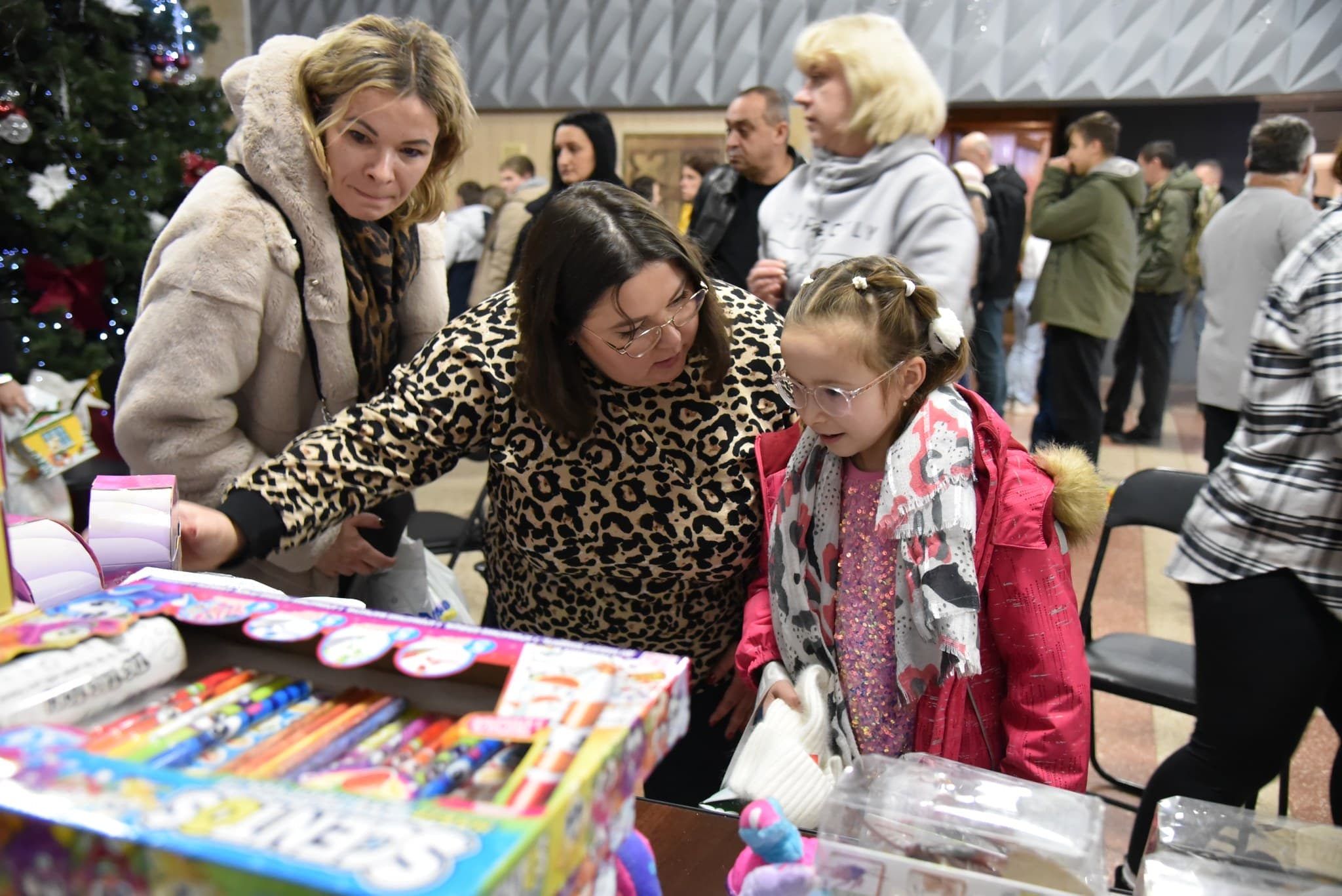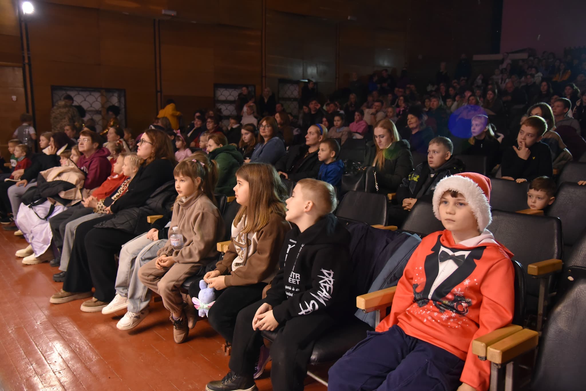 Малеча поринула в атмосферу чарівної вистави «Різдво на паузі» та отримала новорічні подарунки, іграшки, продуктові набори, сертифікати на купівлю взуття.