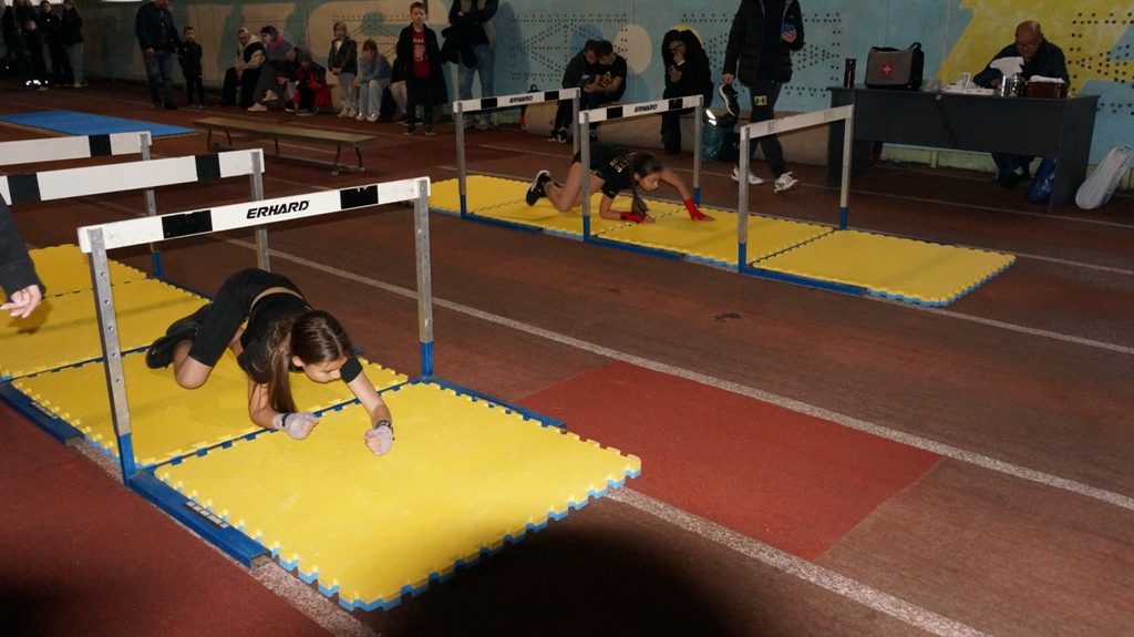 Спеціально для змагань на біговій доріжці легкоатлетичного манежу було обладнано смугу перешкод, подолати яку потрібно було не допускаючи помилок і з найшвидшим часом. Для менш підготовлених була просто смуга перешкод, а для більш досвідчених додавались двобої. Вони повинні були після подолання дистанції, ще провести спаринг із суперником.