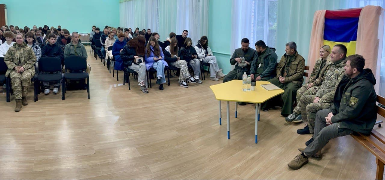 Урок Мужності проходив у формі відкритого діалогу, учнівська молодь активно долучилась до бесіди з капеланами. Атмосфера була дружньою, гості багато розповідали про свою службу, відповідали на запитання, приводячи приклади із власного життєвого досвіду.